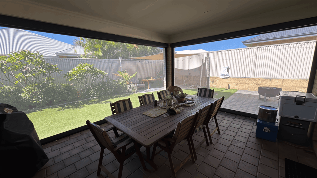 This Baldivis outdoor area was designed for entertaining, but managing sun, wind and changing conditions throughout the day required a more flexible solution.