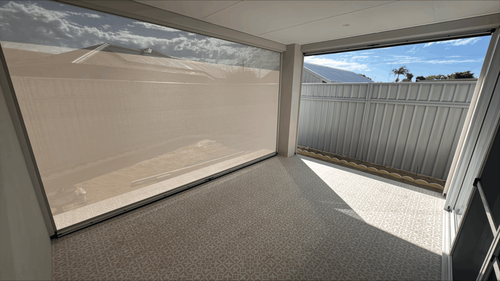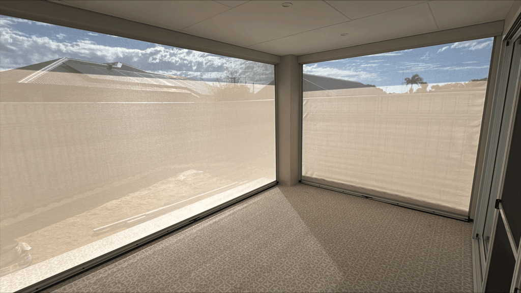 The mesh fabric allows for airflow and natural light while maintaining daytime privacy, so the space still feels open without sacrificing comfort. With the blinds easily operated, the area can now be adjusted depending on the weather, making it ideal for year round use.