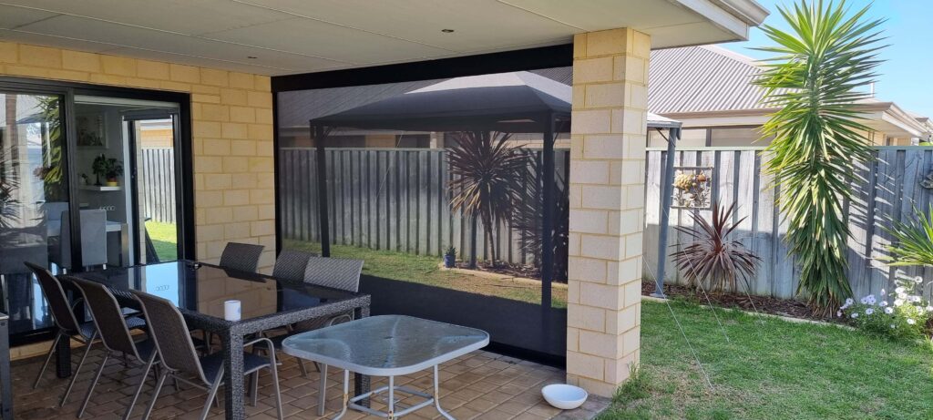 For this installation 1 x Ziptrak® Outdoor Blinds with extra heavy bottom rails were selected to enclose the area. All the aluminium components were Powder Coated in Black to work with the existing surroundings to provide a seamless finish.