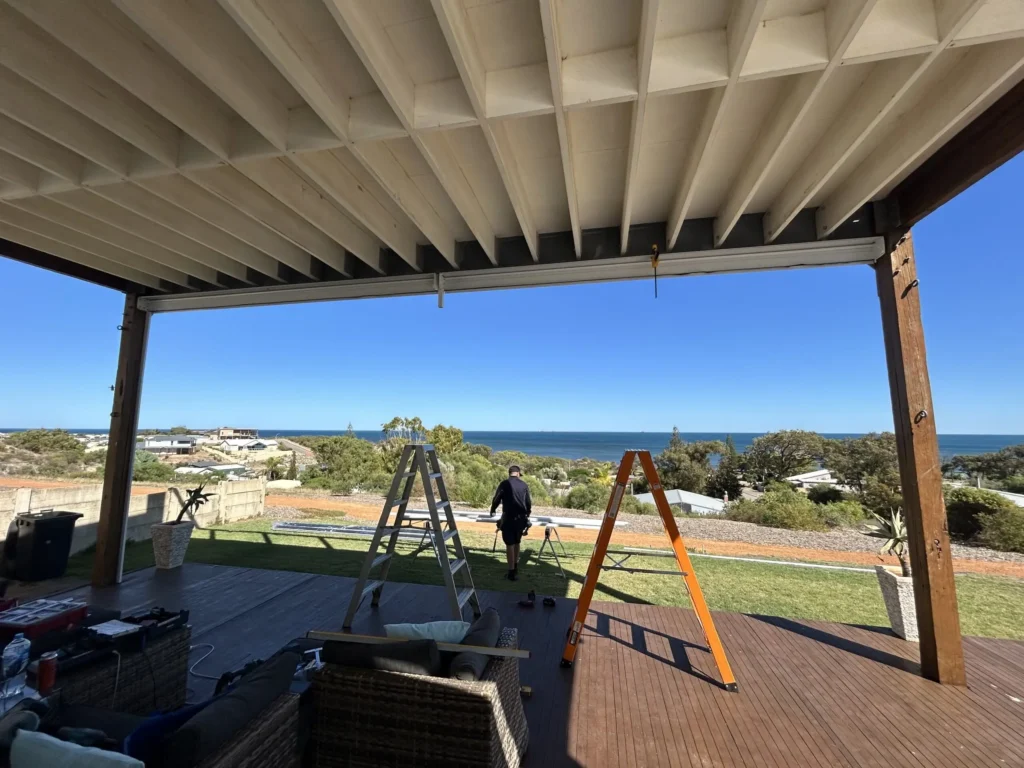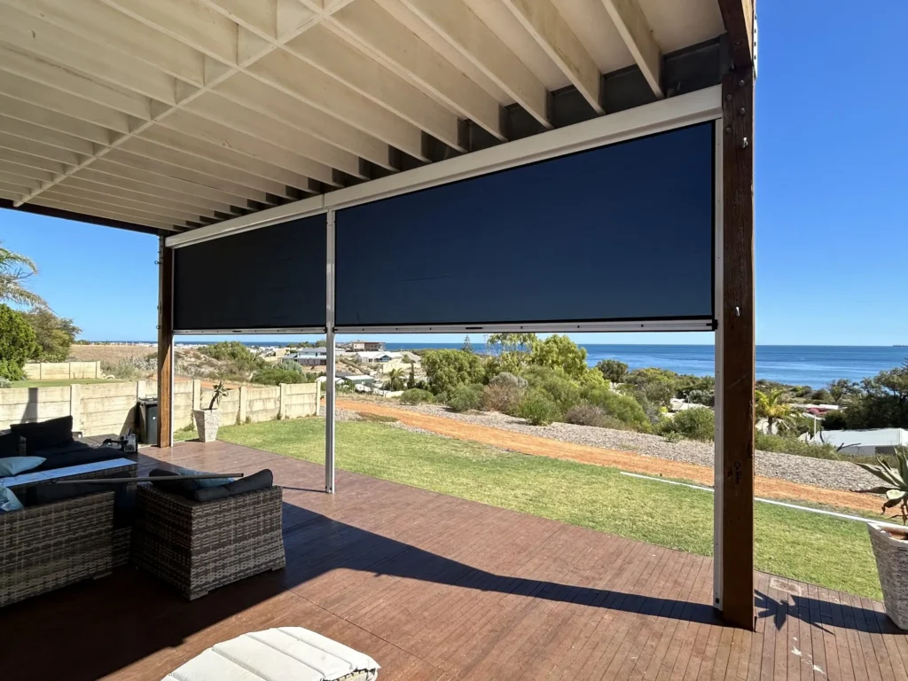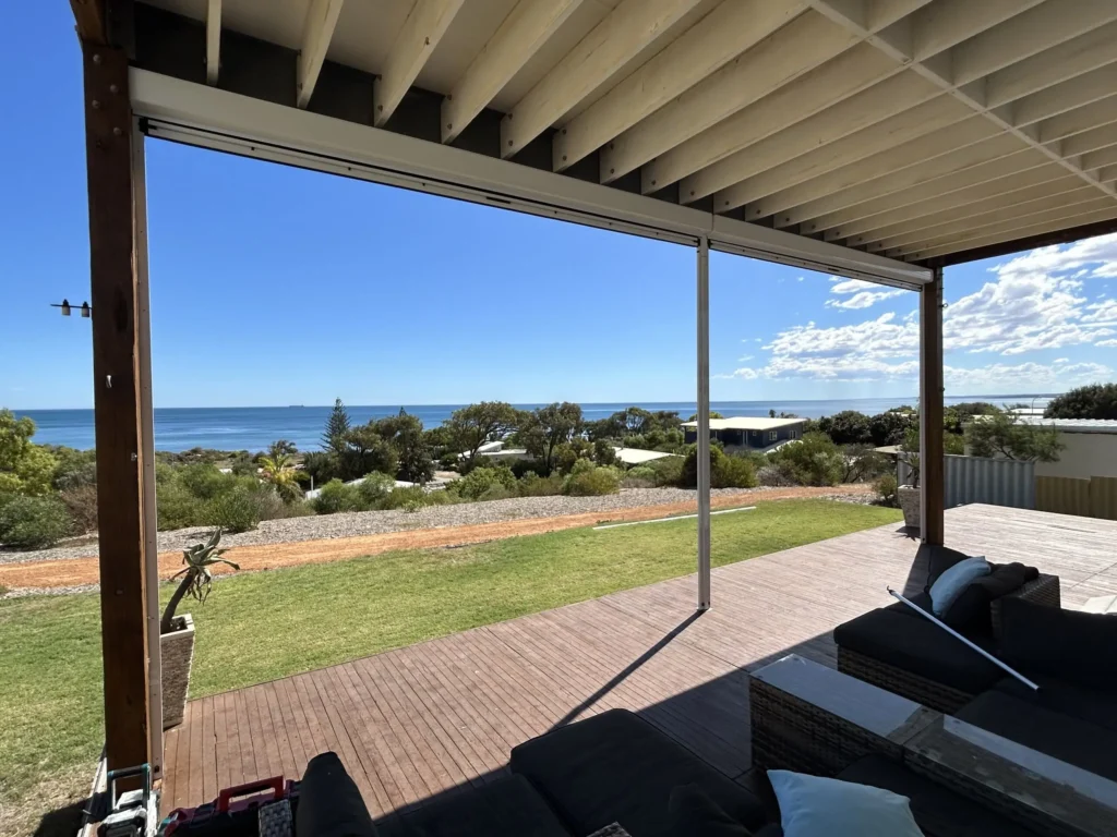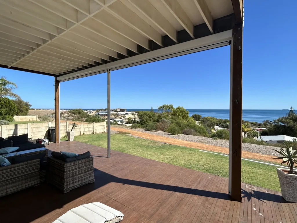 With strong coastal winds and plenty of direct sun, the owners of this Geraldton property wanted a way to make their outdoor area more comfortable without losing their ocean views.
