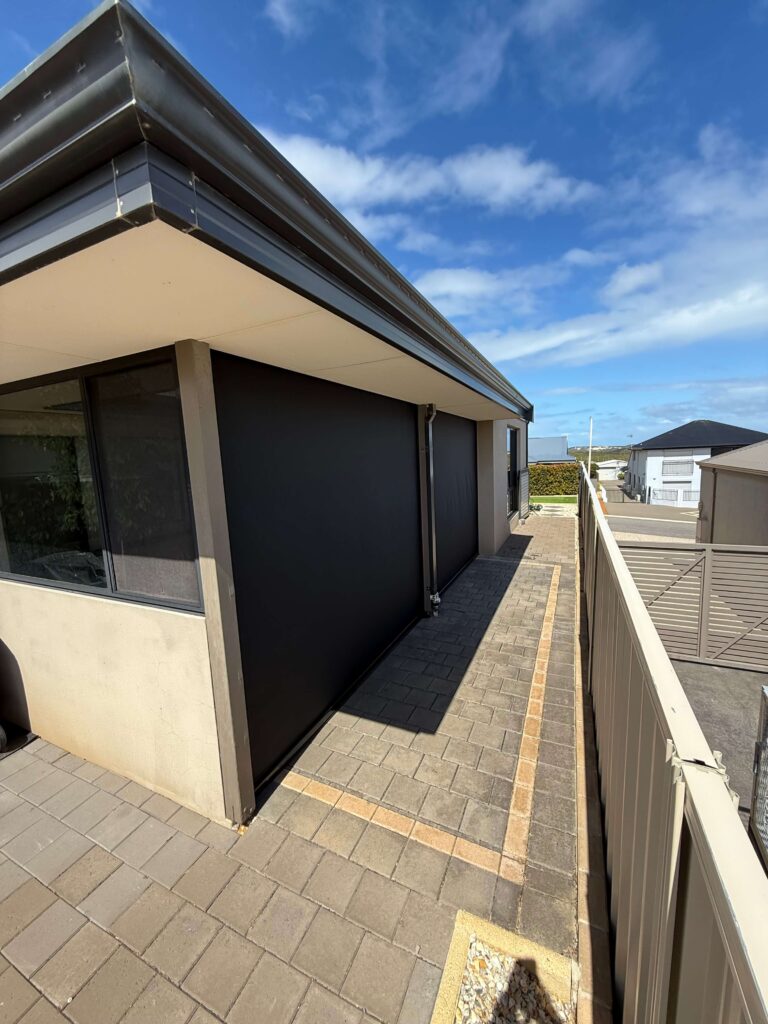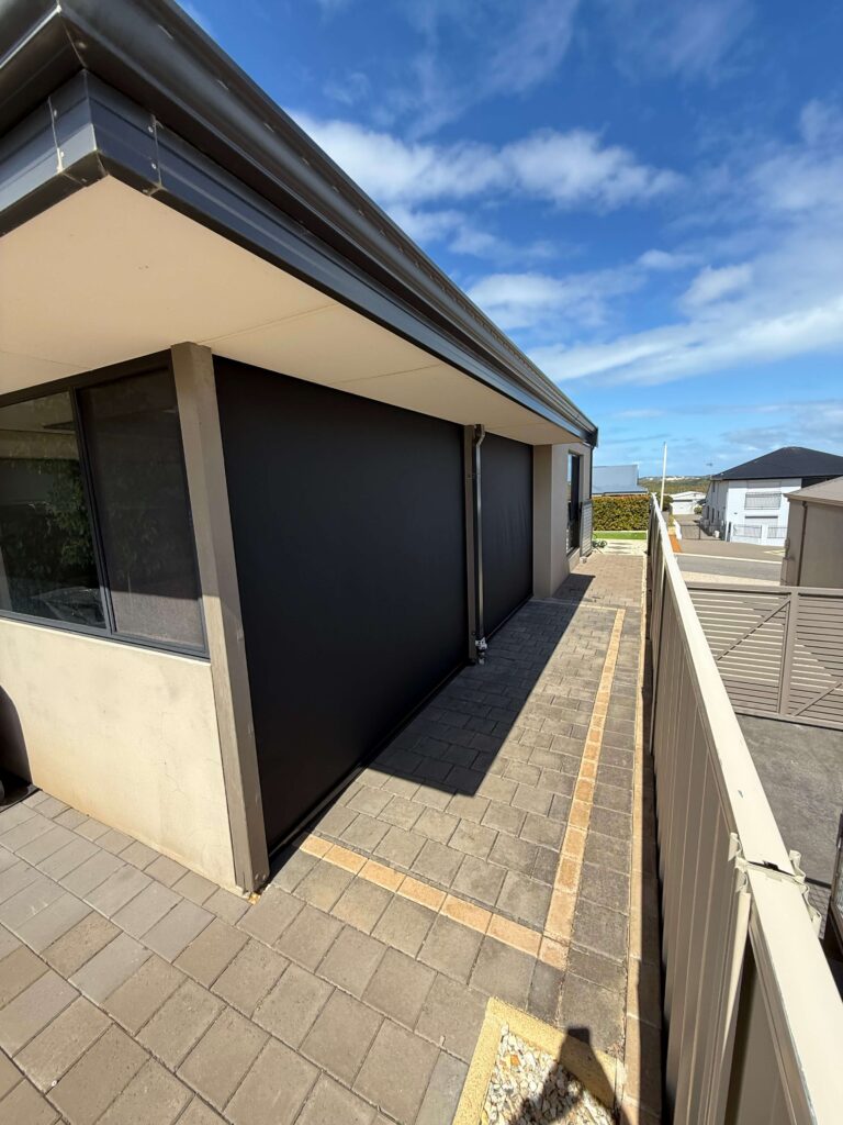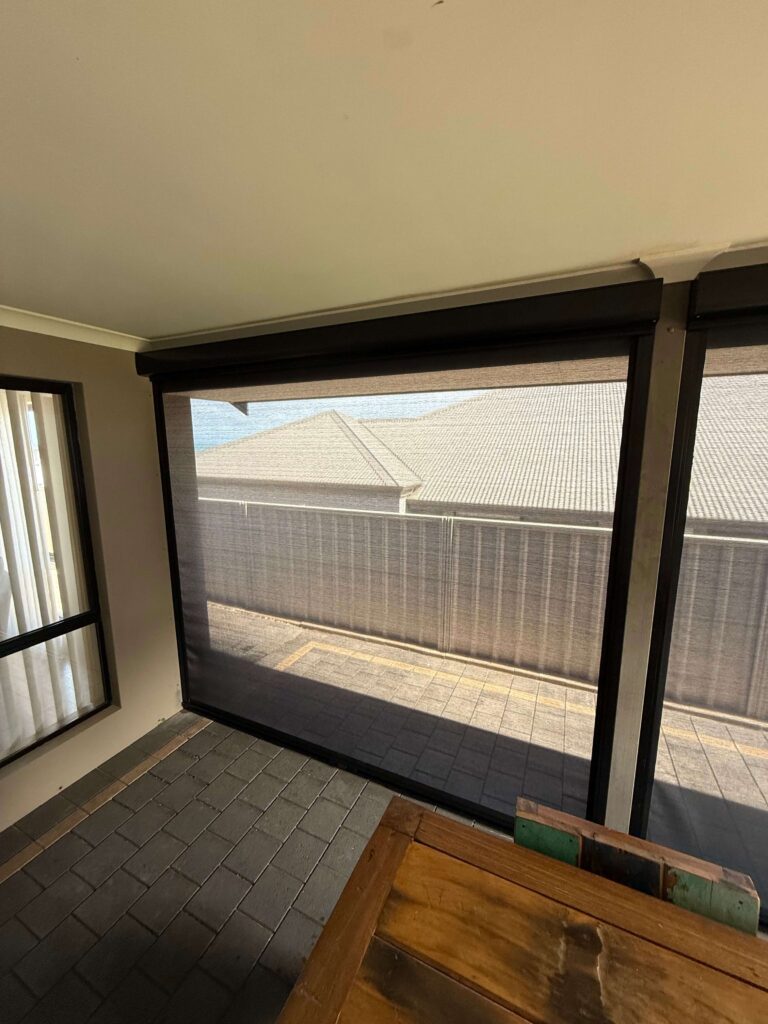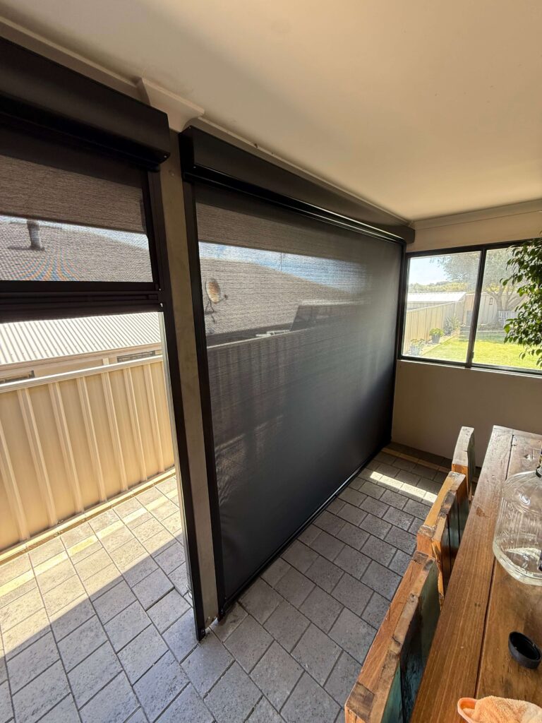 For this installation 2 x Ziptrak® Outdoor Blinds with aluminium hoods with bug guards were selected to enclose the area. All the aluminium components were Powder Coated in Black to work with the existing surroundings to provide a seamless finish.