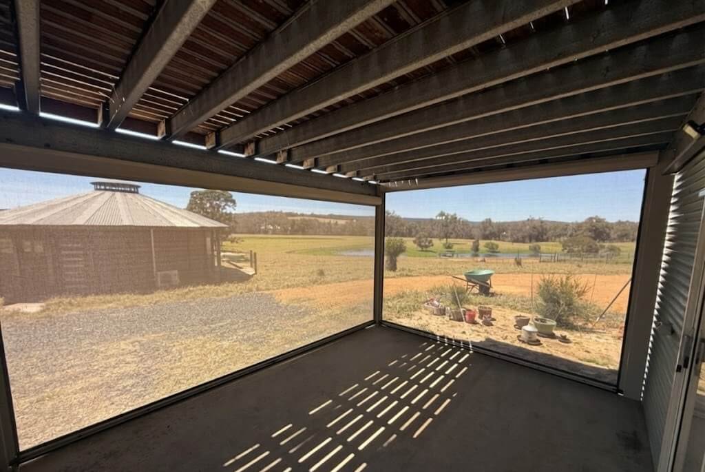 At this Nannup property, the owners wanted to make better use of their outdoor spaces. With southern WA’s weather swinging from warm afternoons to chilly winds, Ziptrak® blinds offered a simple way to create a sheltered, comfortable area, without permanently enclosing it.