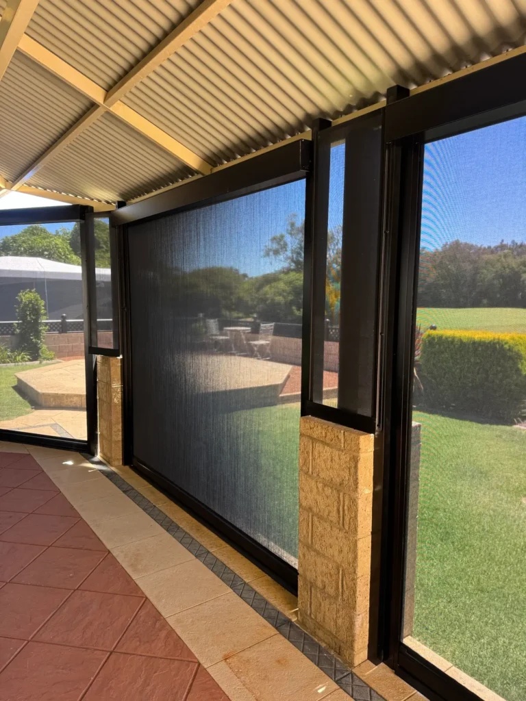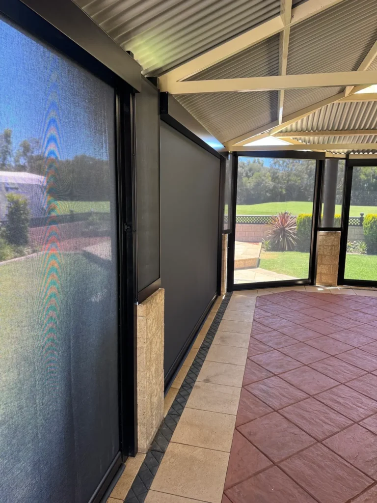 Fully enclosing the patio provides a range of practical benefits. The area is now protected from wind and rain, allowing the homeowners to enjoy outdoor dining and relaxation regardless of the weather. The blinds also create an effective barrier against insects, making evenings outdoors far more enjoyable. With full motorisation and simple remote-control operation, the blinds can be opened or closed throughout the day to suit changing conditions, offering flexibility, comfort and ease of use.