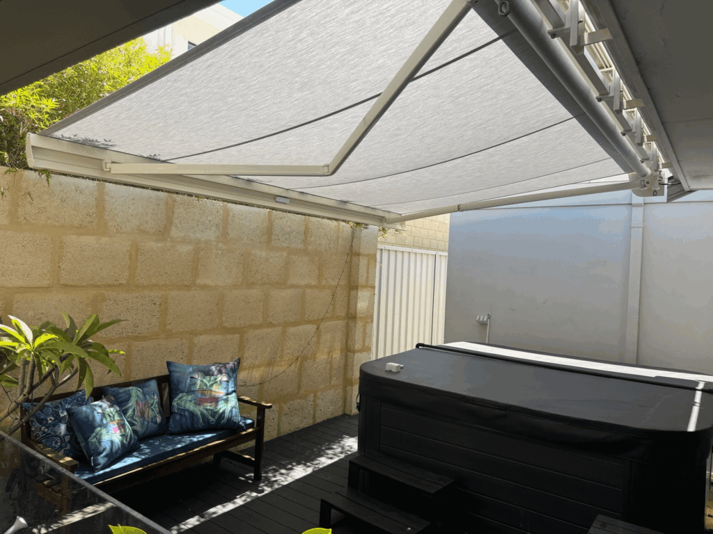 Their new folding arm awning provides the flexibility they were after – offering much-needed shade during hot summer afternoons, while neatly tucking away on cooler days.