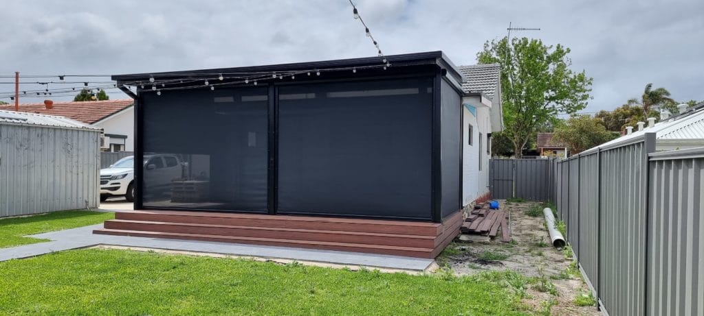 4 x Ziptrak® Outdoor Blinds were selected for the job. All aluminium components are Powered Coated in Black, and the mesh is in the colour Carbon Black to match the existing surroundings.